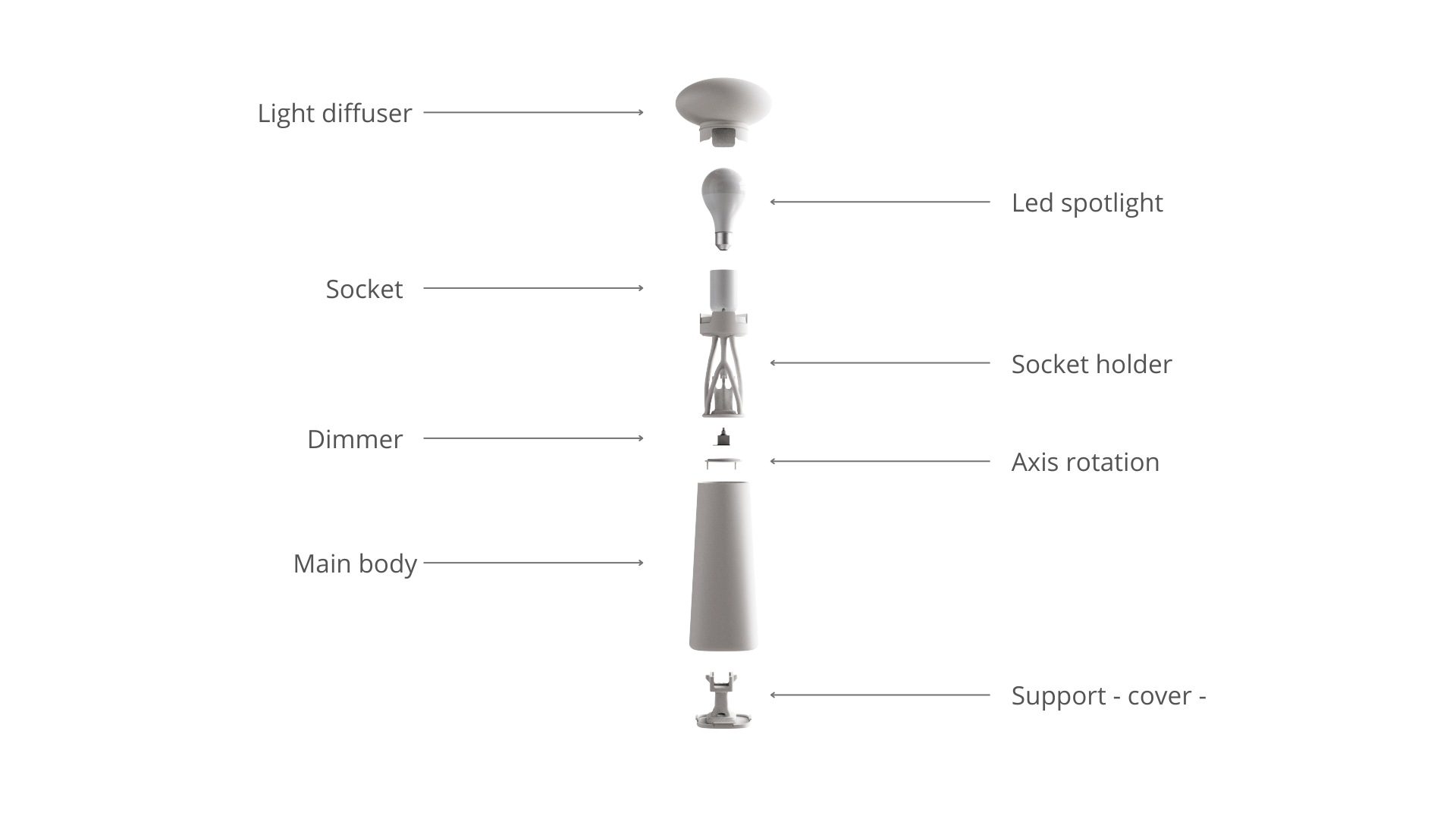 A DIY desk lamp designed to be fully 3D printed and assembled at home, without complex tools.