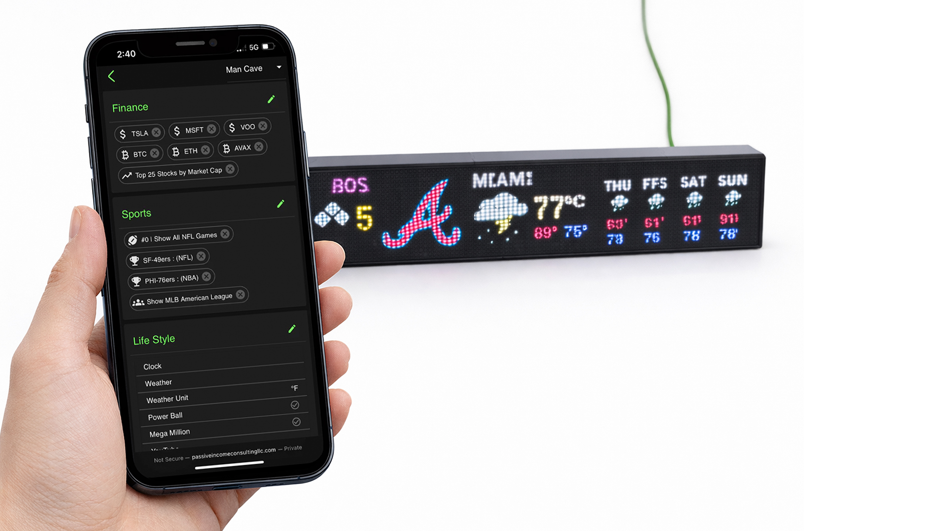 Glance Scroll is an LED display designed to show real-time information clearly, directly, and without distractions. Unlike conventional screens, it does not seek maximum resolution, but rather prioritizes only the truly important data: weather, cryptocurrency market, stock market, sports scores, and much more. This philosophy makes it an ideal device for quick and constant consultations, where information is always on the move. The redesign of Glance Scroll stems from the challenge of creating a scalable and modular system capable of growing using the same parts as the base model (Studio Version). Thanks to this approach, the display can be adapted to different sizes and contexts of use: from a home office or game room to larger spaces such as offices, man caves, or venues. The system consists of three fundamental parts that, when combined, allow for multiple configurations. This not only simplifies assembly, but also reduces the number of components needed, optimizing assembly times and lowering production costs by avoiding custom parts. Glance Scroll can be mounted on a wall or placed on a table, with a 2° tilt that improves the viewing angle. Content is easily controlled via its mobile app: simply connect via Wi-Fi to customize, schedule, and update information in real time. The app is available on both the App Store and Google Play, making the experience intuitive and accessible.